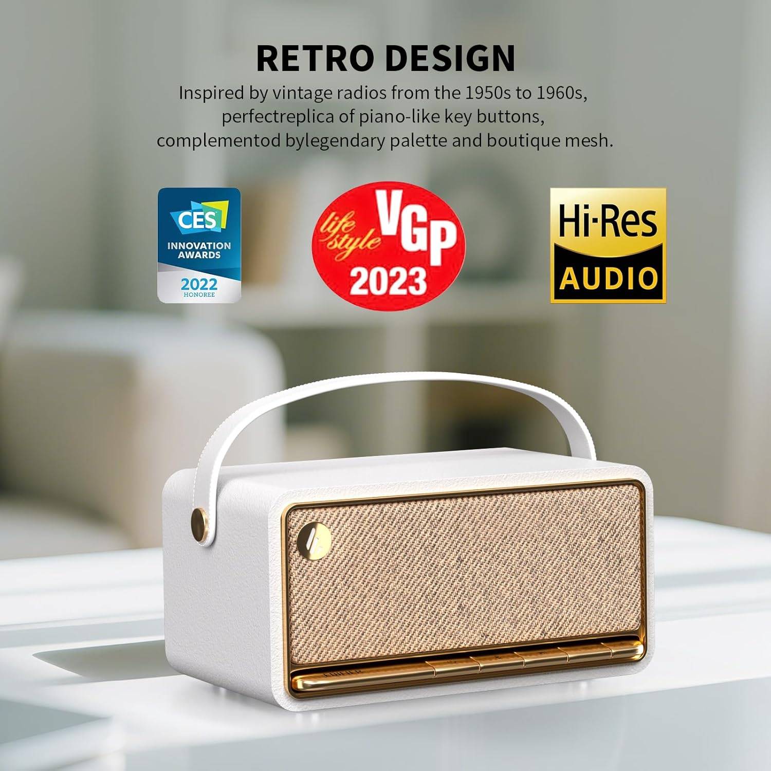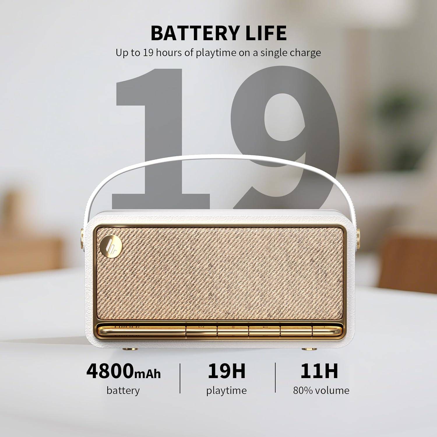 A Edifier MP330 é uma coluna portátil bluetooth com design retro e em madeira MDF; Para maior praticidade e usabilidade, conta com pegas em pele de alta qualidade; O acabamento das arestas garante aderência confortável e reduz o desgaste e erosão; O receptor Bluetooth v5.4 suporta ligação simultânea de 2 dispositivos Bluetooth; Alterne facilmente entre o seu smartphone e tablet, sem complicações; Som de alta qualidade com experiência de áudio a 360°; Hi-Res Audio com conversor analógico-digital