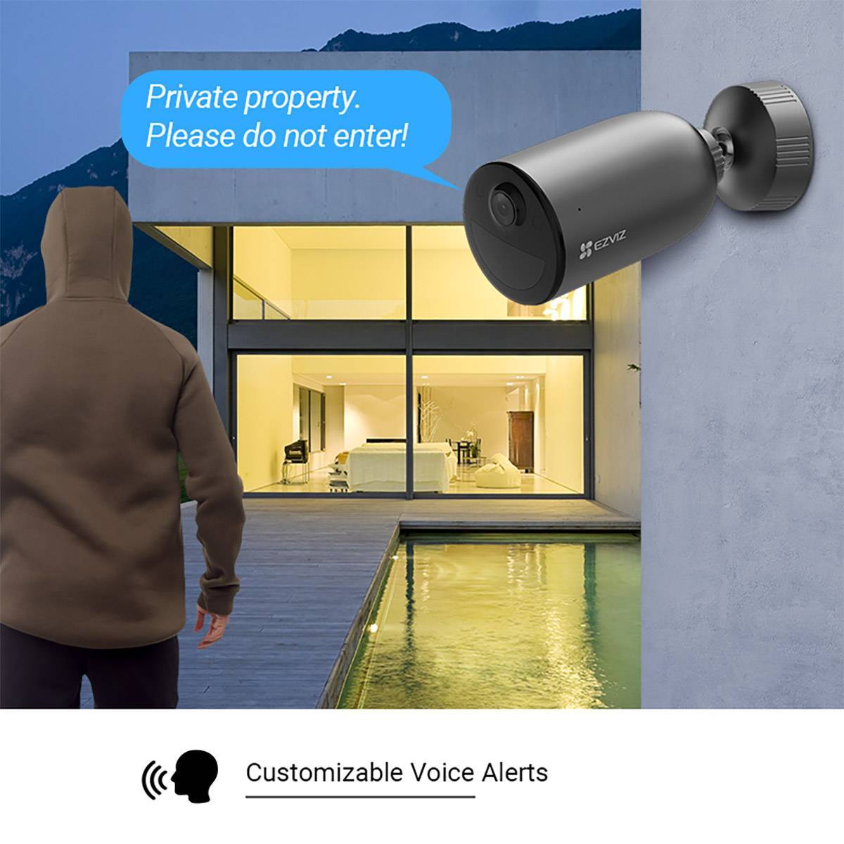 Resolução 2K Modo de proteção sempre ligado Até 120 dias de duração da bateria (5200 mAh) Deteção de forma humana/veículo com tecnologia de IA Defesa ativa Visão noturna a cores Design à prova de intempéries Conversa bidirecional