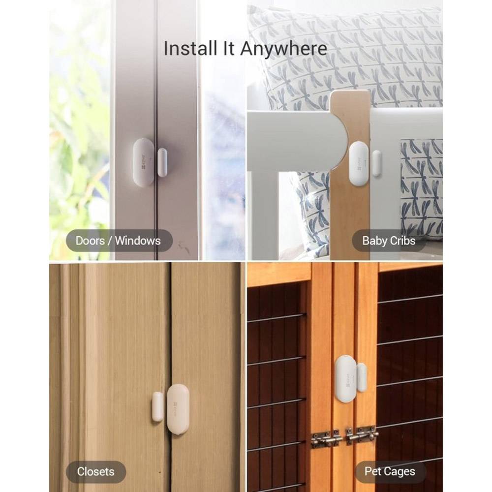 Deteção de abertura / fecho Alertas instantâneos através da aplicação EZVIZ Alarme anti-violação Instalação com fita adesiva Design economizador de energia com bateria de longa duração Integração inteligente com câmaras EZVIZ²