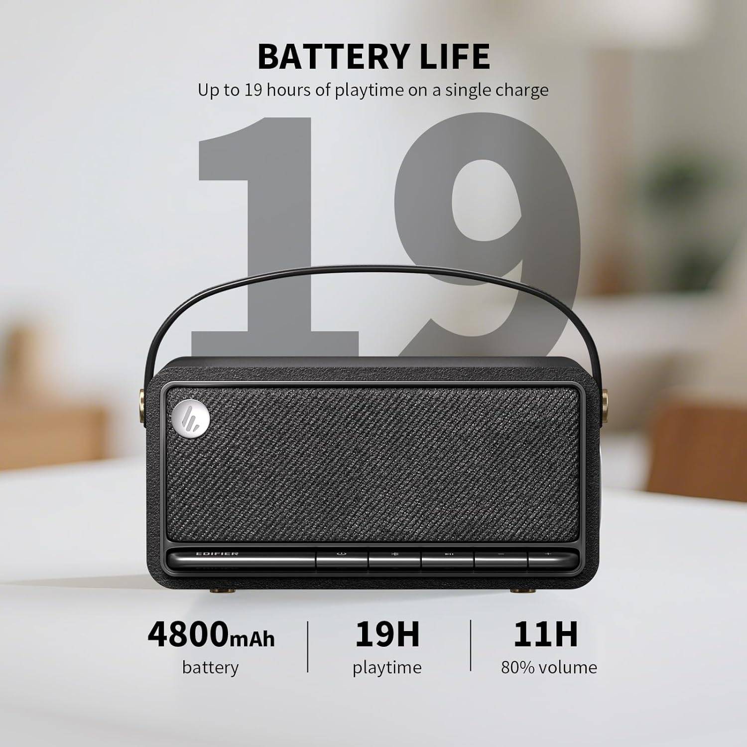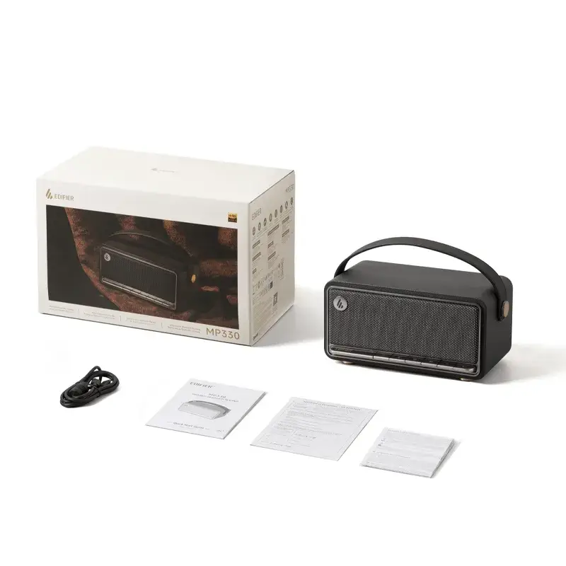 A Edifier MP330 é uma coluna portátil bluetooth com design retro e em madeira MDF; Para maior praticidade e usabilidade, conta com pegas em pele de alta qualidade; O acabamento das arestas garante aderência confortável e reduz o desgaste e erosão; O receptor Bluetooth v5.4 suporta ligação simultânea de 2 dispositivos Bluetooth; Alterne facilmente entre o seu smartphone e tablet, sem complicações; Som de alta qualidade com experiência de áudio a 360°; Hi-Res Audio com conversor analógico-digital