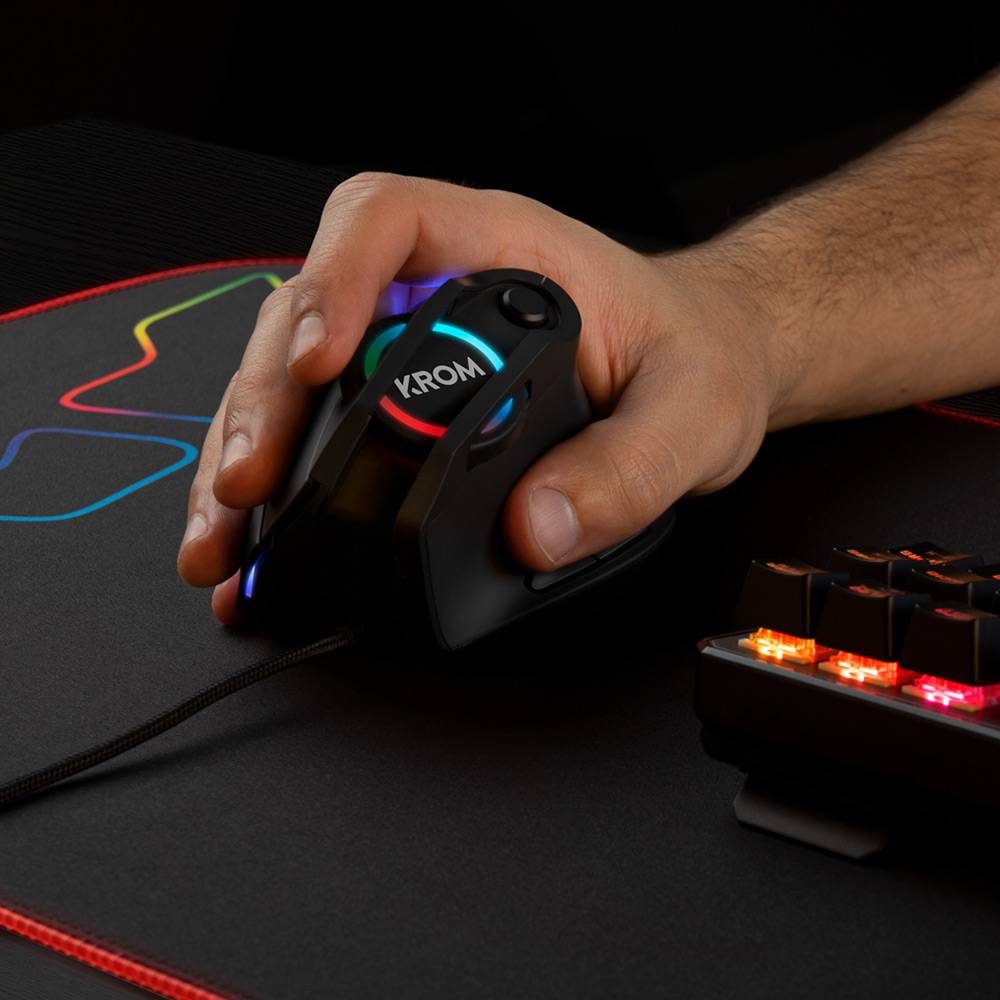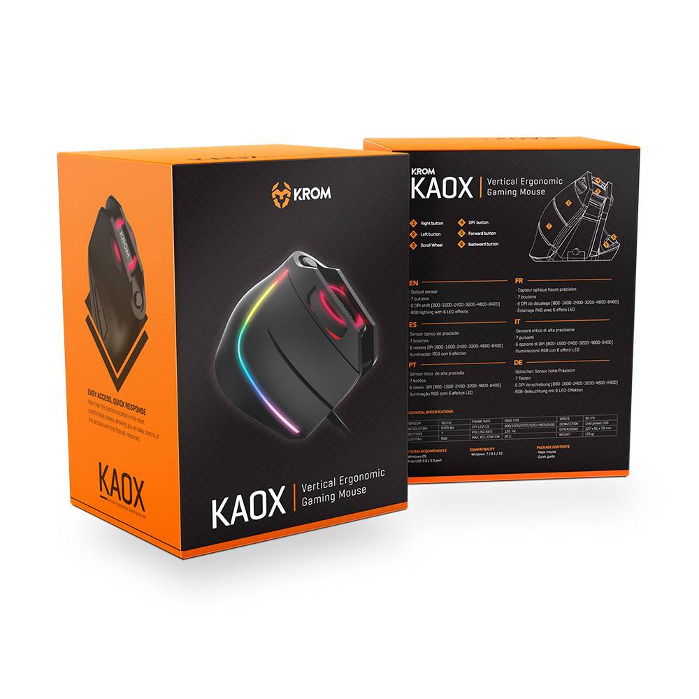 Este produto no momento não temos em stock, se tiver interesse em comprá-lo entre em contato conosco clicando aqui!ERGONOMMIA AVANÇADA A posição natural das palmas das mãos em relação ao antebraço é que elas trabalham em conjunto. Graças ao seu design ergonómico, com o Krom Kaox a postura do braço e punho não é forçada, aliviando a tensão dos músculos e articulações. Macio ao toque, construído com materiais de qualidade, garante uma aderência fácil. A mão acostuma-se à nova forma descansanda o polegar confortavelmente, deixando também o dedo mindinho perfeitamente posicionado. Trabalhar longas horas na frente do computador não será um incómodo, impedindo possíveis lesões e ajudando na recuperação, se houver. EXCELENTE DESEMPENHO A sensação de conforto ao segurar o Krom Kaox é imediata. Confortável, mas também preciso e ágil, possui um sensor óptico de seis níveis que atinge 6400 DPI (800 - 1600 - 2400 - 3200 - 4800 - 6400). Movimentos confortáveis, estáveis e fluidos para um jogo ideal. Com o Krom Kaox, terá um bom deslize em qualquer tipo de tapete. DESIGN SOFISTICADO COM 7 BOTÕES Este sofisticado rato vertical possui um total de 7 botões, cada um localizado nos locais mais confortáveis, incluindo, juntamente com os botões tradicionais (clique esquerdo, botão direito e central) os botões de avançar e retroceder. Terá ainda o botão para controlar o DPI e o botão para ligar / desligar o LED. ILUMINAÇÃO RGB O design inovador e sofisticado do Kaox apresenta iluminação RGB. Você vai deixar-se levar pela iluminação RGB, que o acompanhará, iluminando na vitória e nos jogos noturnos. Ergonomia e um design cuidadoso com até 6 efeitos de LED que o iluminarão nas suas longas sessões de jogos, garantindo conforto e maior eficiência. Especificações: Sensor: Óptico Resolução: 800-1600-2400-3200-4800-6400 DPI Taxa de relatório: 125 Hz Aceleração máxima: 20 G Velocidade: 60 IPS Botões: 7 Retroiluminação: RGB Compatibilidade: Windows 7 / 8.1 / 10 Conexão: Com fio, USB Dimensões do produto: 127 x 81 x 79 mm Peso do produto: 165 g